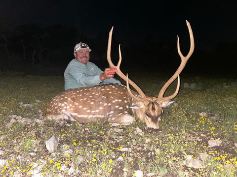 Big rolling hills with good glossing points offers great spot-and-stalk hunting as well as safari style and long range hunting. On average, we will see 50 Axis in one morning or evening hunt with muliple bucks over 32". Bucks killed on this property range from 32"-37". If you are looking for a free range axis buck of a lifetime, this hunt is for you. Best time of year for this hunt is June-July during the Axis rut. All game care is included in all of our hunts as well as delivery to processor and taxidermy.